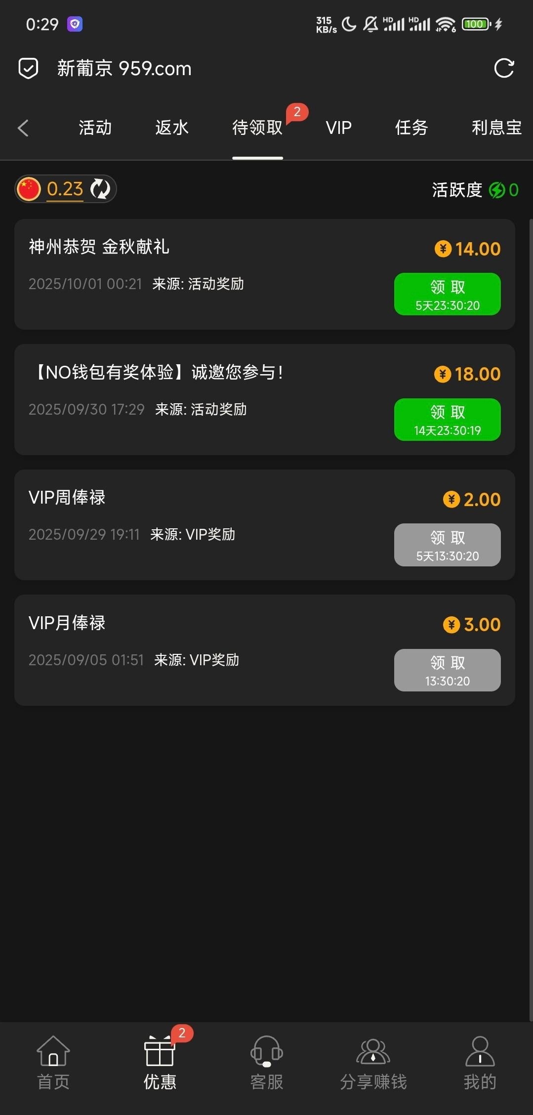 959.com国庆礼金,登录就有