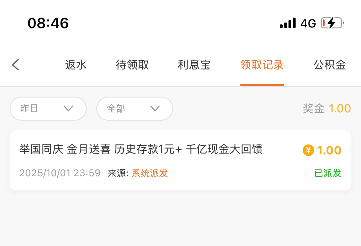 领到了1块钱