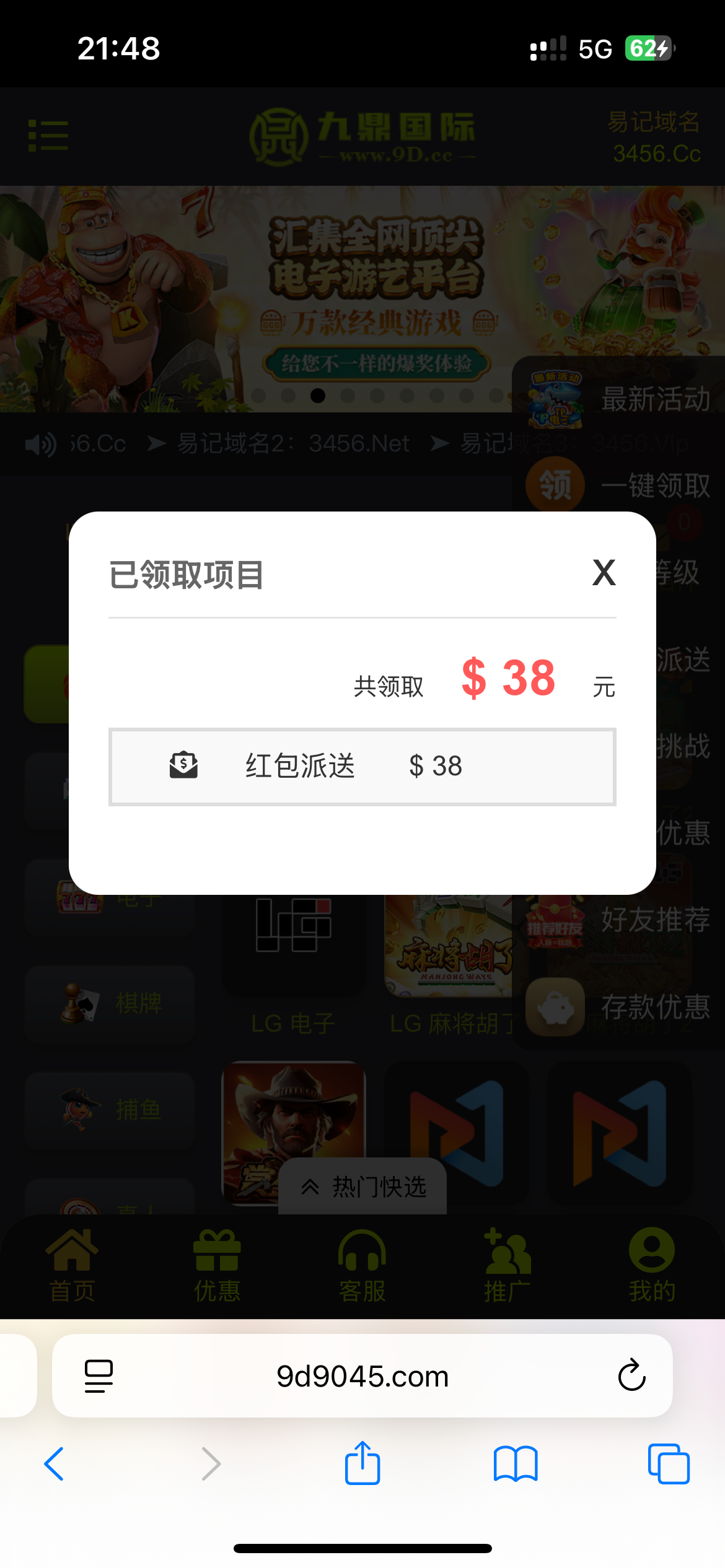 【九鼎国际】电话回归彩金38