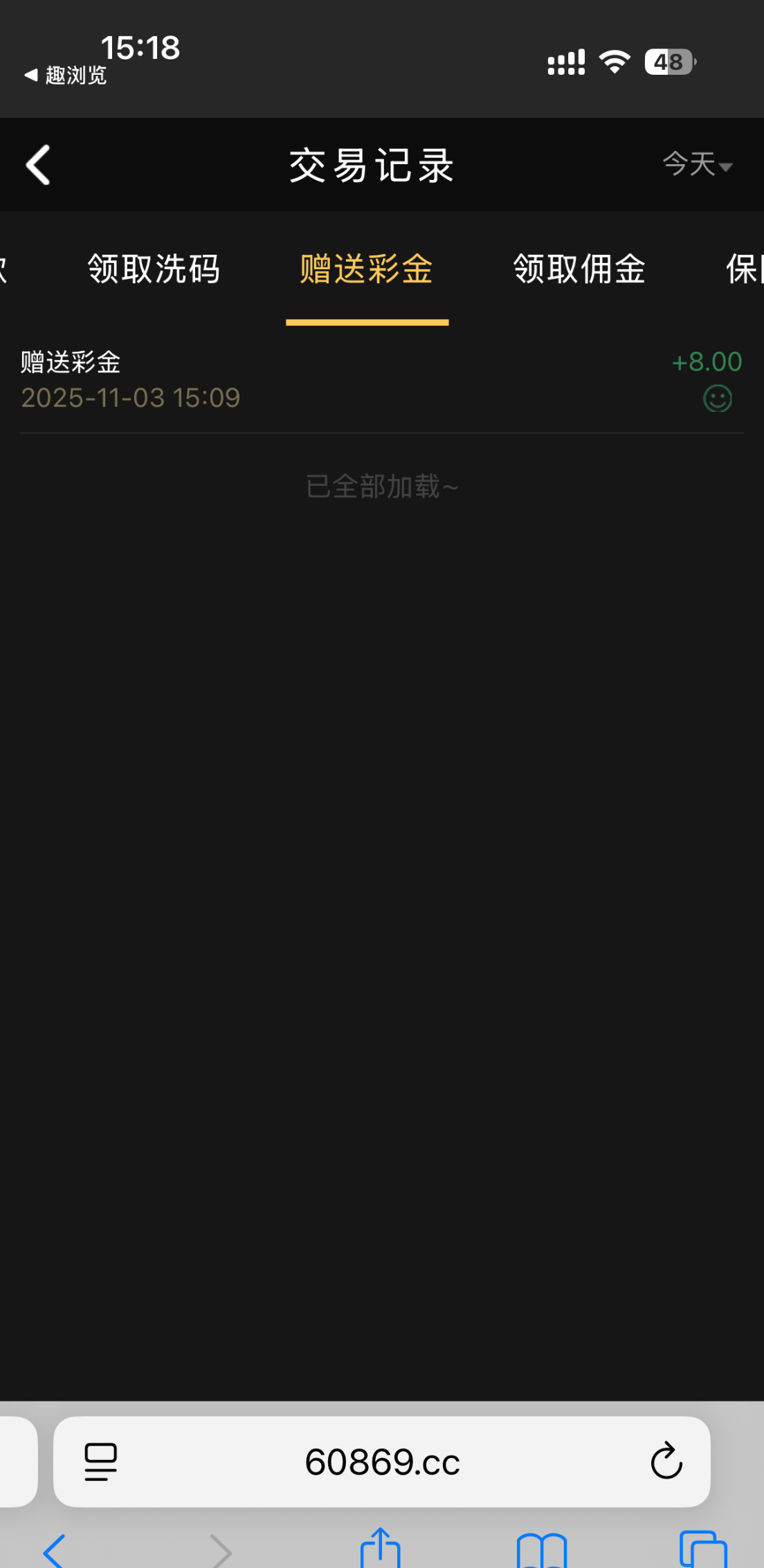 60869.cc 连送三天,只给了8块。在线客服申请