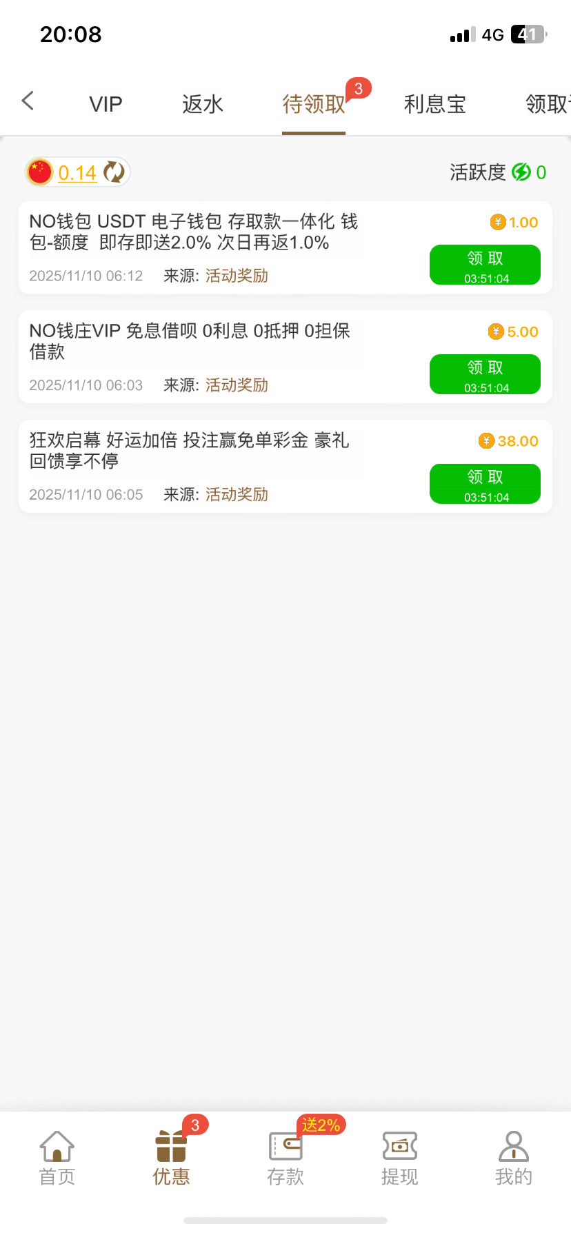 我想起来了,这是领取特邀彩金,那个要充值200的那个,没充值过,没有
