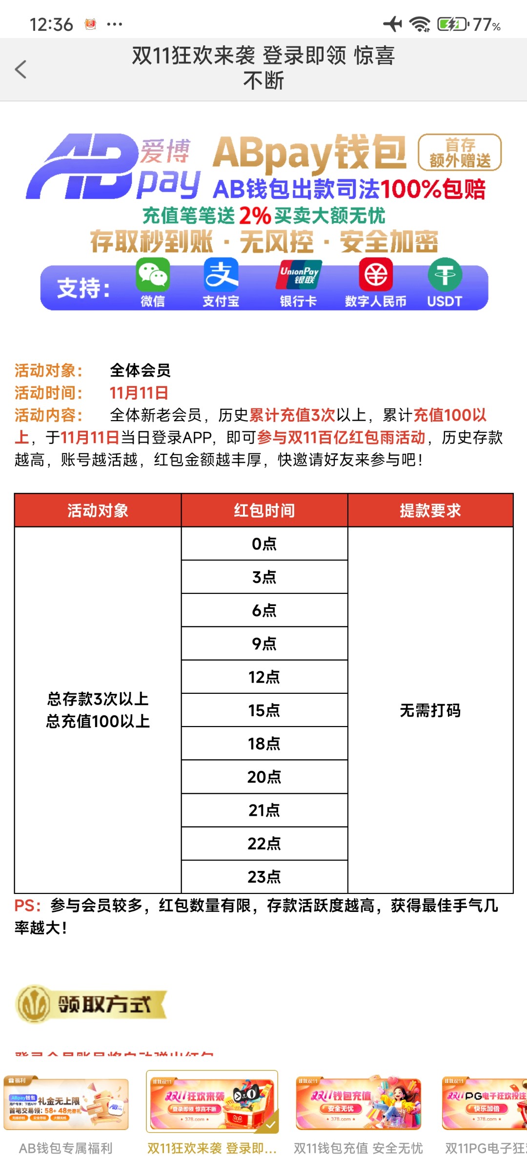 玩过的兄弟到点可以去领取,一天11场红包雨