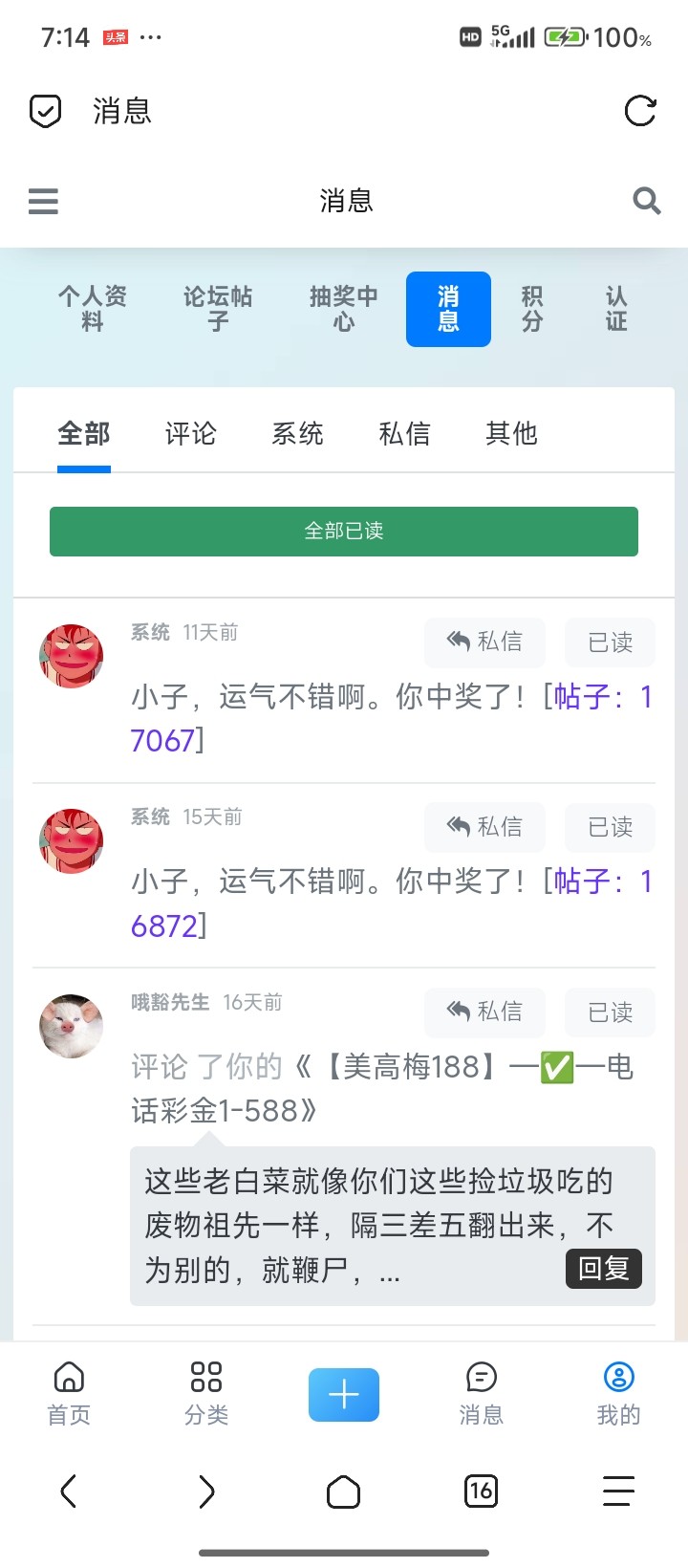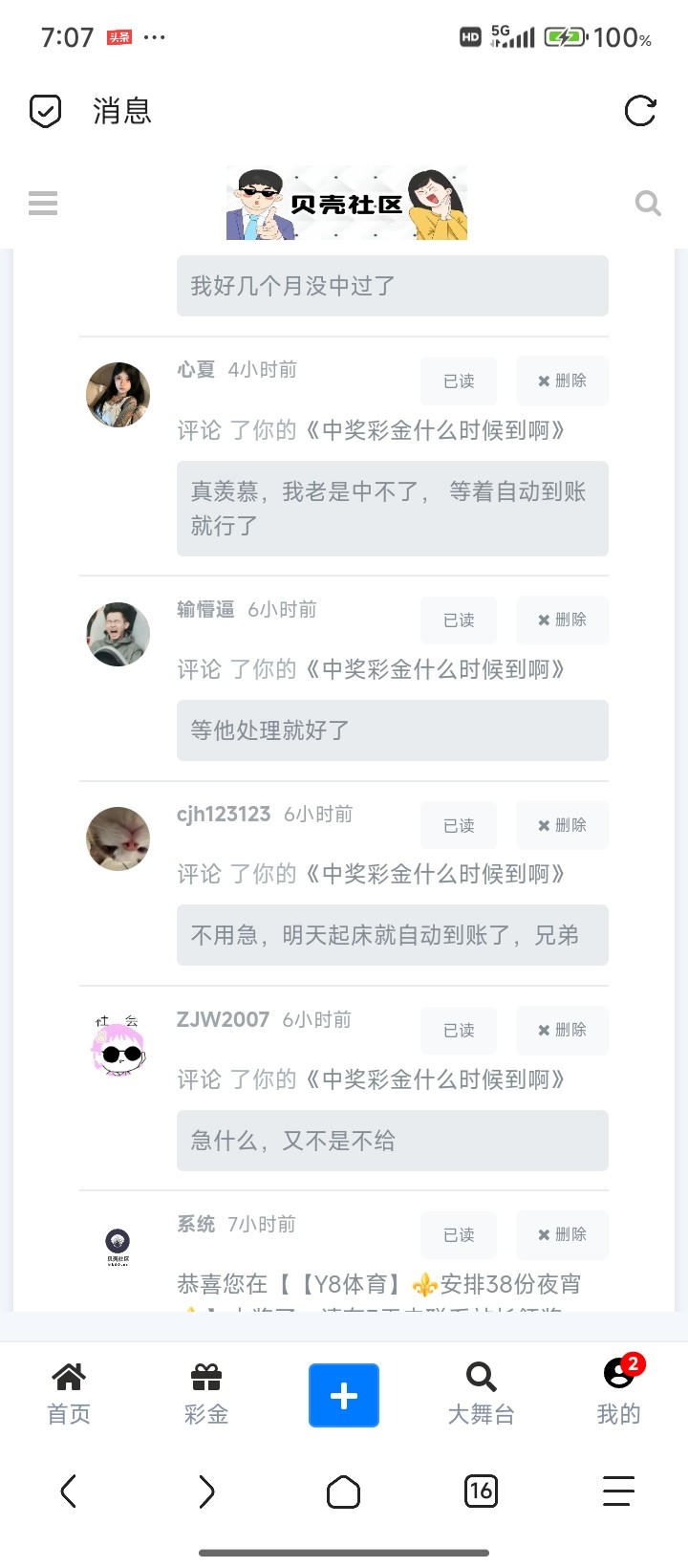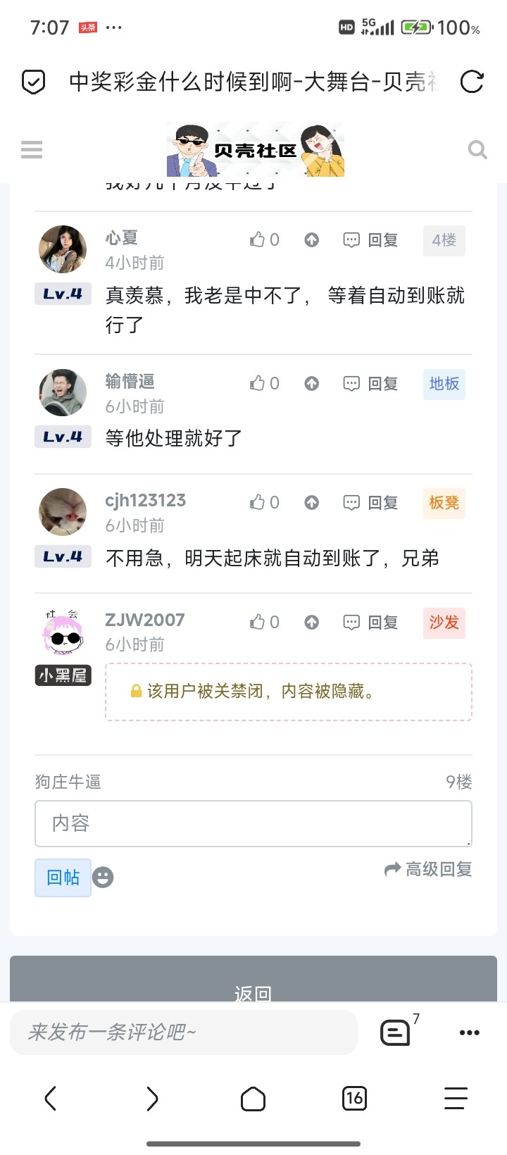 狗庄牛逼 你要这么想,自己发布一个,特邀领彩金的帖子,自己领取到了,别人没有领取到,然后骂你,换你你会继续好过吗,本来就是好心发出来的