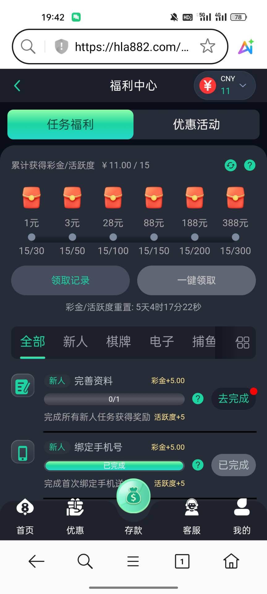 注册优惠里面任务福利里面完成任务领取882.com